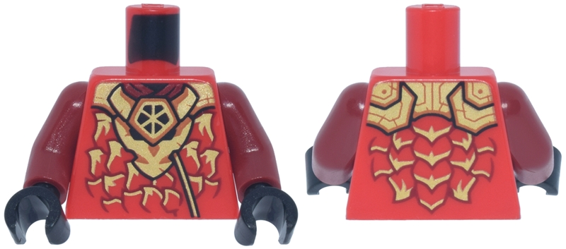 Torso Robe with Gold and Dark Orange Dragon Head and Armor, Dark Red Scales Pattern / Dark Red Arms / Black Hands