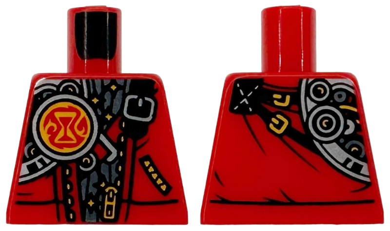 Torso Vest with Zipper, Pocket and Mechanical Shoulder, Bright Light Orange Wires and Hourglass, Black Straps, Silver Buckles Pattern