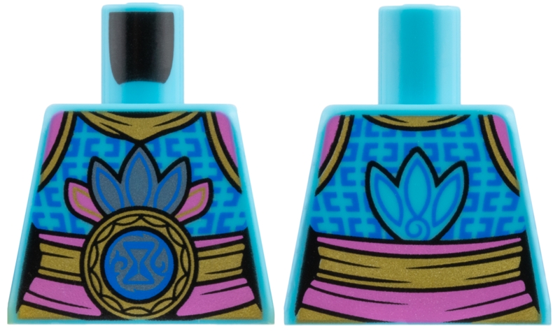 Torso Female, Gold Hems and Medallion, Dark Pink Sash, Metallic Blue Feather, Hourglass Pattern