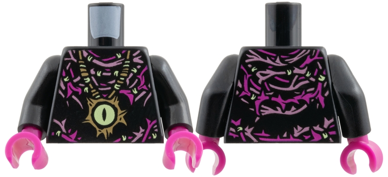 Torso Magenta and Metallic Pink Vines with Thorns, Medium Nougat Necklace with Yellowish Green Eye and Wraps Pattern / Black Arms / Magenta Hands