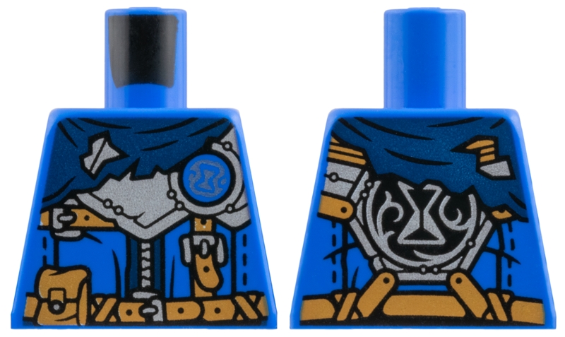 Torso Dark Blue Tattered Scarf, Silver Armor, Buckles, and Zipper, Metallic Blue Hourglass, Medium Nougat Belts and Pouch Pattern
