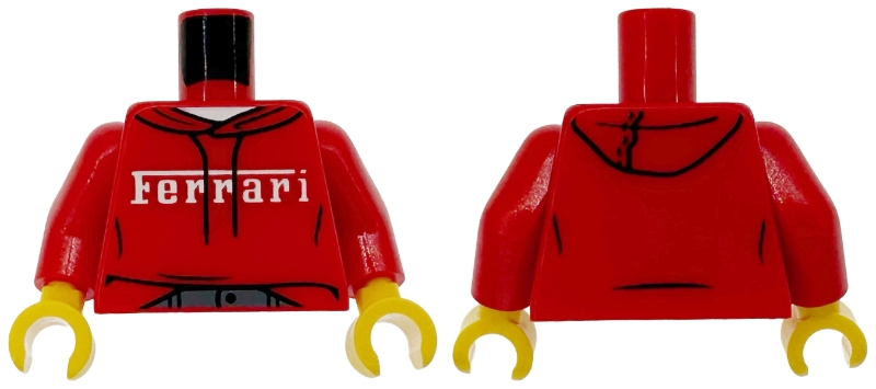 Torso Hoodie with Black Drawstrings and Stitching, White Ferrari Logo and Undershirt, Dark Bluish Gray Pants Pattern / Red Arms / Yellow Hands