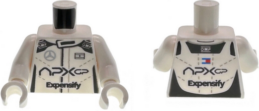 Torso Racing Suit with Black Sides, 'APXGP', 'Expensify', 'OMP', Silver Mercedes-Benz, Blue and Red Tommy Hilfiger Logos and Light Bluish Gray Stitching Pattern / White Arms / White Hands