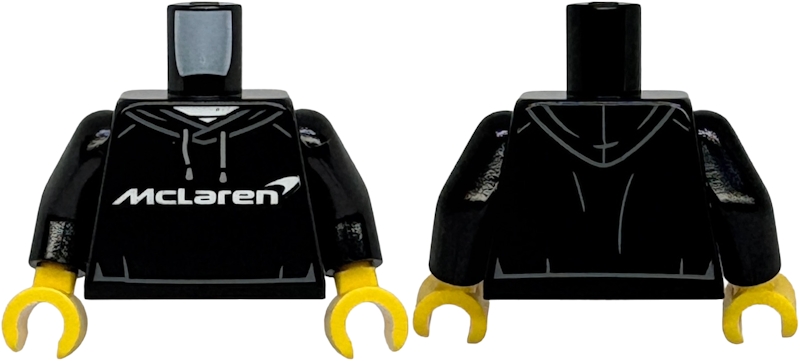 Torso Hoodie with Light Bluish Gray Drawstrings, Dark Bluish Gray Hem Lines, White 'McLaren' Logo and Undershirt Pattern / Black Arms / Yellow Hands