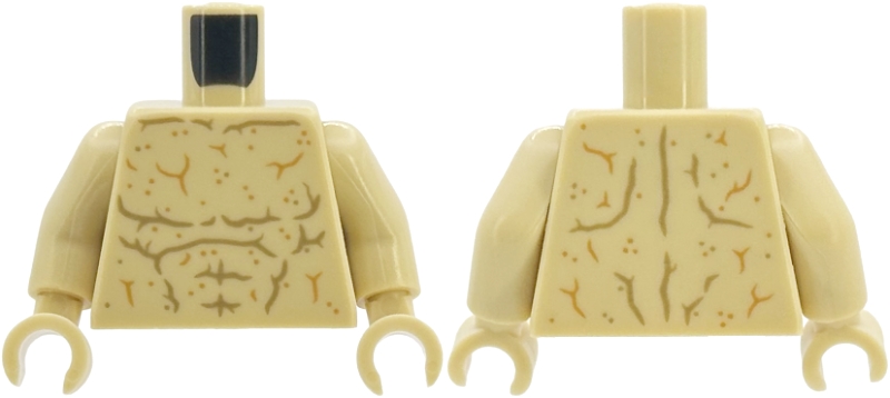 Torso Bare Chest with Sandy Texture with Dark Tan and Medium Nougat Speckles, Cracks, Veins and Muscle Contours Pattern / Tan Arms / Tan Hands