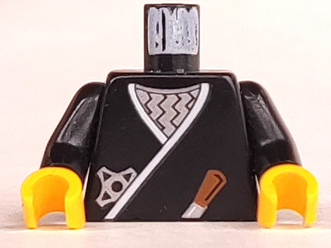Torso Castle Ninja Wrap, Brown Dagger, Silver Star, Silver Zigzags Pattern / Black Arms / Yellow Hands