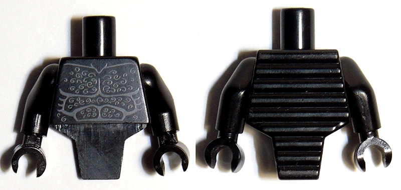 Torso, Modified Short with Ridged Armor with Bare Chest with Muscles Outline and White Chest Hair Pattern / Black Arms / Black Hands