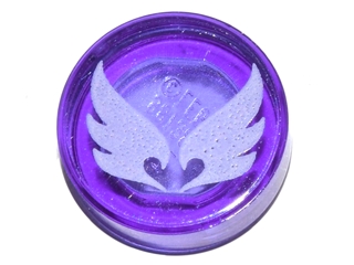 Tile, Round 1 x 1 with Elves Wind Power Symbol, White Wings Pattern