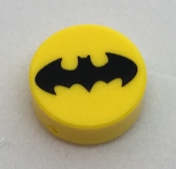 Tile, Round 1 x 1 with Black Bat Batman Logo Pattern