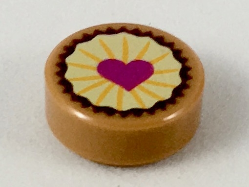 Tile, Round 1 x 1 with Pastry, Magenta Heart on Bright Light Yellow Icing Pattern
