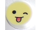 Tile, Round 1 x 1 with Emoji, Bright Light Yellow Face, Black Eyes, Wink, and Coral Tongue Sticking Out Pattern