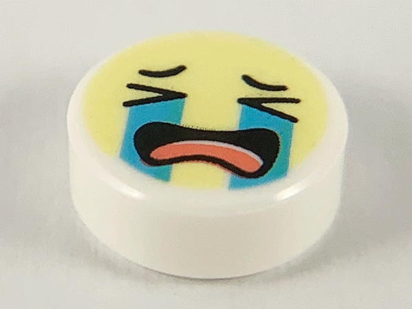 Tile, Round 1 x 1 with Emoji, Bright Light Yellow Face, Crying Medium Azure Tear Streams, Open Mouth with Coral Tongue Pattern