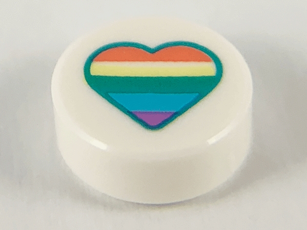 Tile, Round 1 x 1 with Heart with Pastel Rainbow Stripes Pattern