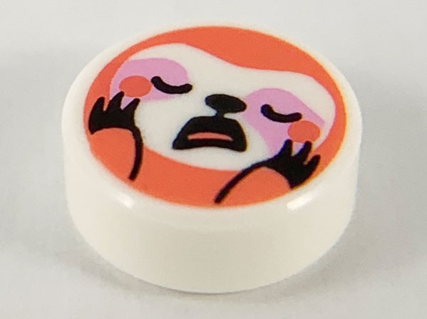Tile, Round 1 x 1 with Coral Sloth with White Face, Bright Pink Around Eyes Pattern