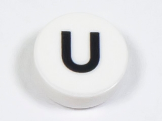 Tile, Round 1 x 1 with Black Capital Letter U Pattern