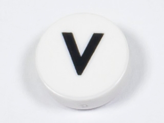 Tile, Round 1 x 1 with Black Capital Letter V Pattern