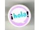 Tile, Round 1 x 1 with Medium Azure 'hola' and Black Exclamation Marks in Speech Bubble on Lavender Background Pattern