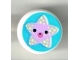 Tile, Round 1 x 1 with Lavender Starfish / Sea Star with Black Eyes and Dark Pink Mouth on Medium Azure Background Pattern
