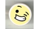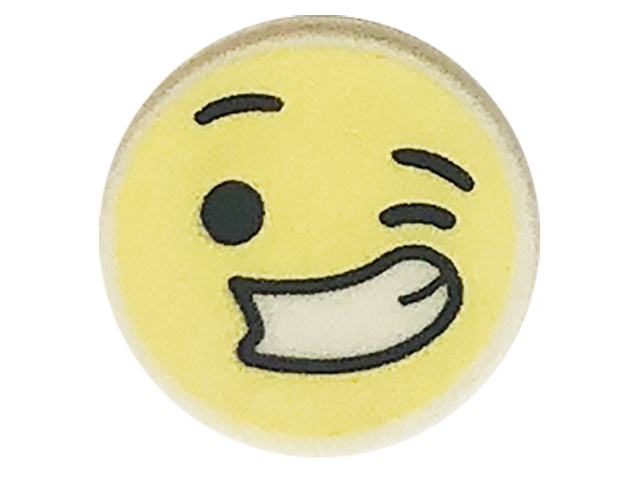Tile, Round 1 x 1 with Emoji, Bright Light Yellow Winking Face, Large Smile with Teeth, and Black Eyes and Eyebrows Pattern