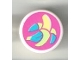 Tile, Round 1 x 1 with Bright Light Yellow Banana with Medium Azure and Yellowish Green Peel on Dark Pink Background Pattern
