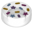 Tile, Round 1 x 1 with Bright Light Blue, Dark Pink, Lavender, and Yellow Sprinkles and Stars Pattern