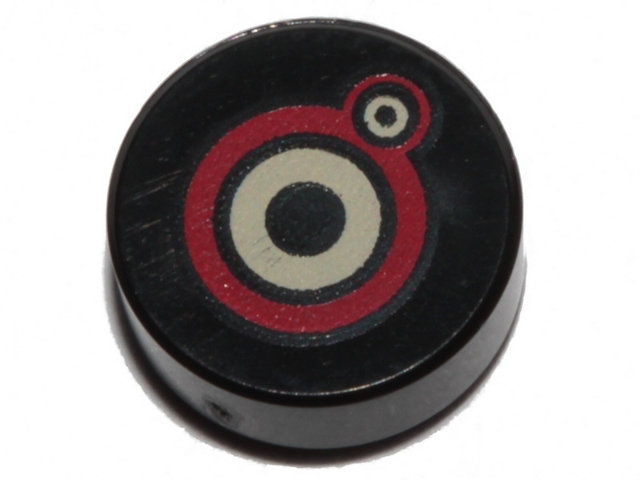 Tile, Round 1 x 1 with Black, Red and Tan Circles Pattern (Monster Eyes)
