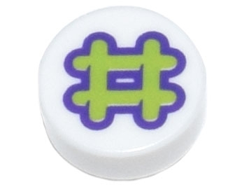 Tile, Round 1 x 1 with Dark Purple and Lime Number Sign / Hash / Pound Sign (#) Pattern