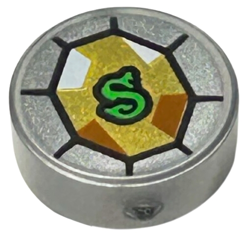 Tile, Round 1 x 1 with Green Letter S Snake on Gold Jewel Pattern (HP Slytherin's Locket)