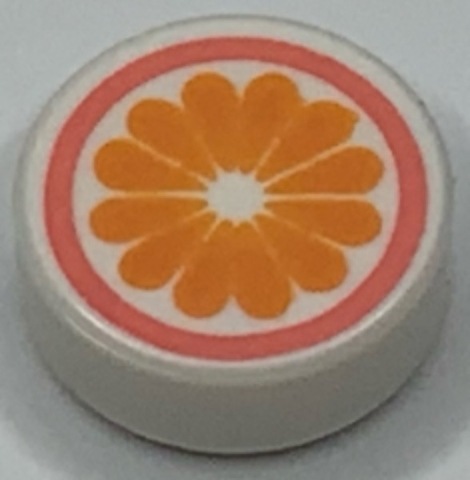 Tile, Round 1 x 1 with Orange Flower in Coral Circle Pattern