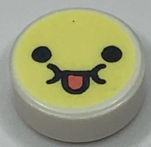 Tile, Round 1 x 1 with Emoji, Bright Light Yellow Face, Black Eyes, and Coral Tongue Sticking Out Pattern