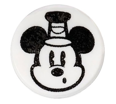 Tile, Round 1 x 1 with Black Mickey Mouse Head with Hat Pattern