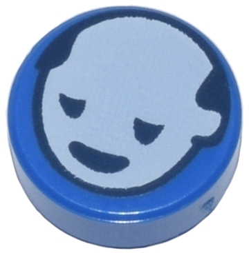 Tile, Round 1 x 1 with White Head with Dark Blue Eyes and Mouth Pattern