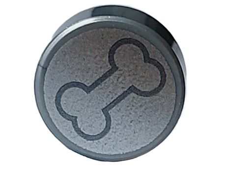 Tile, Round 1 x 1 with Dark Bluish Gray Outlined Bone on Metallic Silver Background Pattern