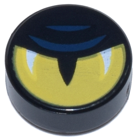 Tile, Round 1 x 1 with Yellow Eye Half Closed, Slit Pupil, White Glints, and Dark Blue Eyelid Lines Pattern