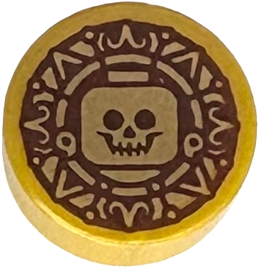 Tile, Round 1 x 1 with Dark Brown Aztec Gold Coin with Minifigure Skeleton Head Pattern