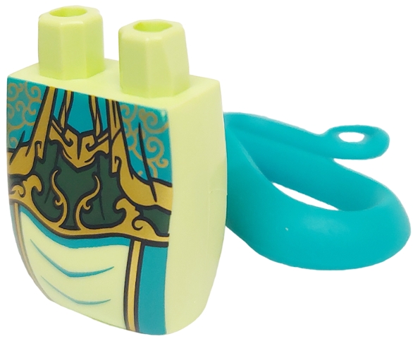 Lower Body, Serpent with Molded Flexible Rubber Dark Turquoise Tail and Printed Dark Turquoise Scales, Gold and Dark Green Dress Ends Pattern