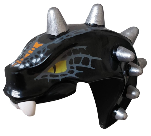 Minifigure, Head, Modified Snake with Silver Horns and Orange Scales Pattern (Skalidor)