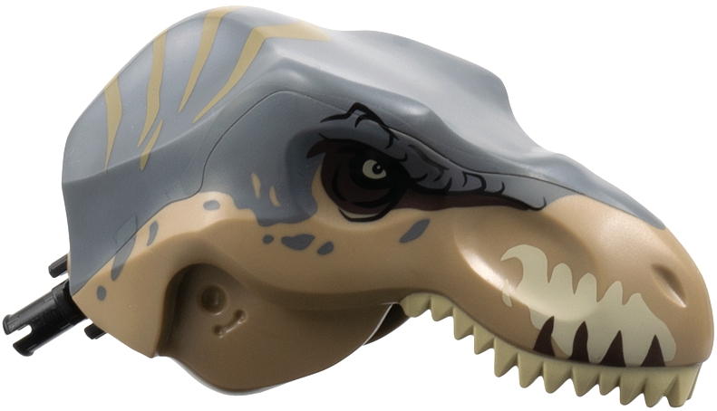 Dinosaur Head Tyrannosaurus rex with Dark Bluish Gray Top and Black Pin with Tan Teeth and Dark Tan Stripes Pattern