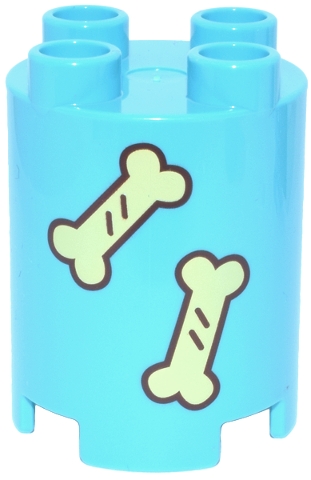 Duplo, Brick Round 2 x 2 x 2 with Reddish Brown and Bright Light Yellow Dog Bones Pattern