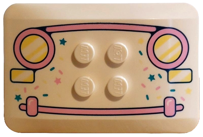 Wedge 6 x 4 x 2/3 Quad Curved with Round Headlights and Rectangle Blinkers with Diagonal Stripes, Bumper, Bright Light Yellow, Bright Pink and Dark Turquoise Ice Frosting and Stars Pattern
