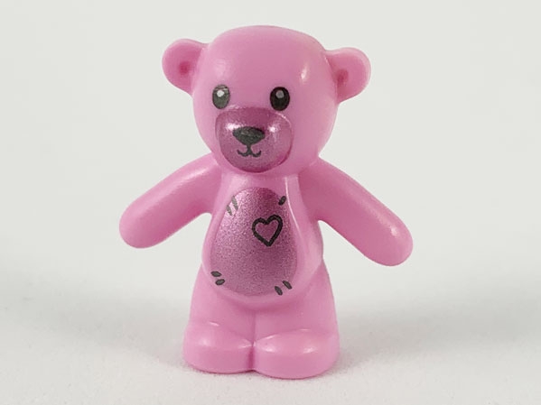 Teddy Bear with Black Eyes, Metallic Pink Muzzle and Stomach, Black Stitches and Heart Pattern