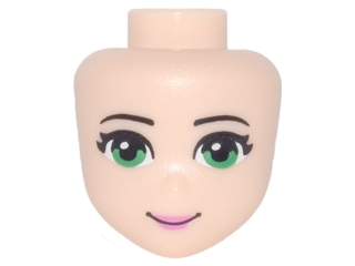 Mini Doll, Head Friends with Thin Black Eyebrows, Green Eyes, Dark Pink Lips, and Closed Mouth Smile Pattern