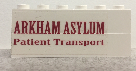 Stickered Assembly 6 x 1 x 2 with 'ARKHAM ASYLUM Patient Transport' Pattern Model Right Side (Sticker) - Set 7785 - 2 Brick 1 x 6