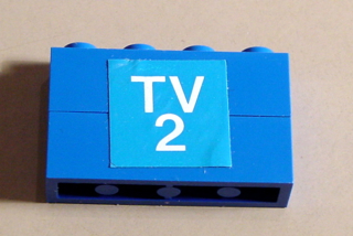 Stickered Assembly 4 x 1 x 2 with White 'TV 2' on Blue Background Pattern (Sticker) - Set 664-1