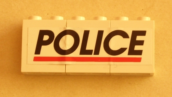 Stickered Assembly 6 x 1 x 2 with Black 'POLICE' and Red Stripe Pattern (Sticker) - Set 6545