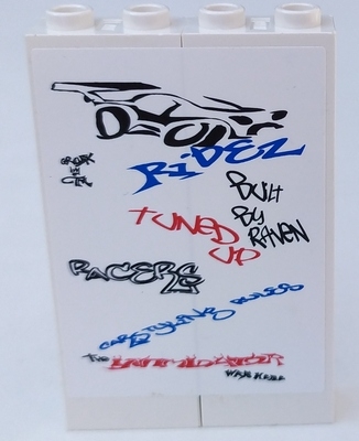 Stickered Assembly 4 x 1 x 5 with 'RACERS' Graffiti Pattern (Sticker) - Set 8681 - 2 Brick 1 x 2 x 5