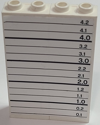 Stickered Assembly 4 x 1 x 5 with Black Lines and '0.1 - 4.2' Height Measurement Chart Pattern (Sticker) - Set 7237 - 2 Brick 1 x 2 x 5
