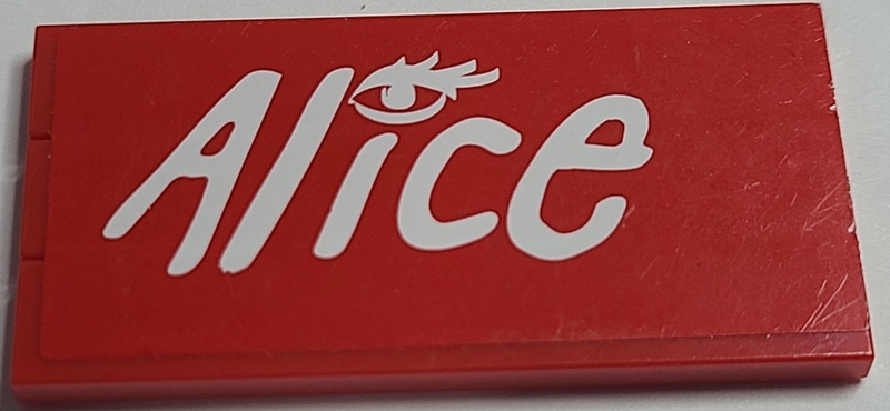 Stickered Assembly 6 x 3 with White 'Alice' Logo and Eye with Eyelashes on Red Background Pattern Model Right Side (Sticker) - Set 8157 - 3 Tile 1 x 6