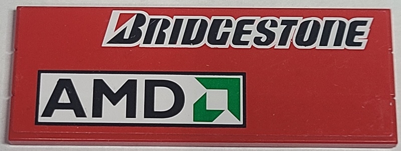 Stickered Assembly 8 x 3 with 'Bridgestone' and 'AMD' Logo on Red Background Pattern Model Right Side (Sticker) - Set 8157 - 3 Tile 1 x 8