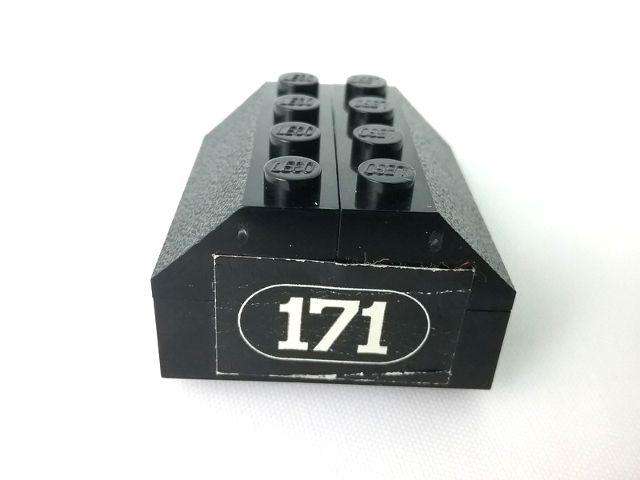 Stickered Assembly 4 x 4 x 2 with White '171' with Border on Black Background Pattern (Sticker) - Set 171 - 1 Brick 1 x 4, 2 Slope 45 2 x 4